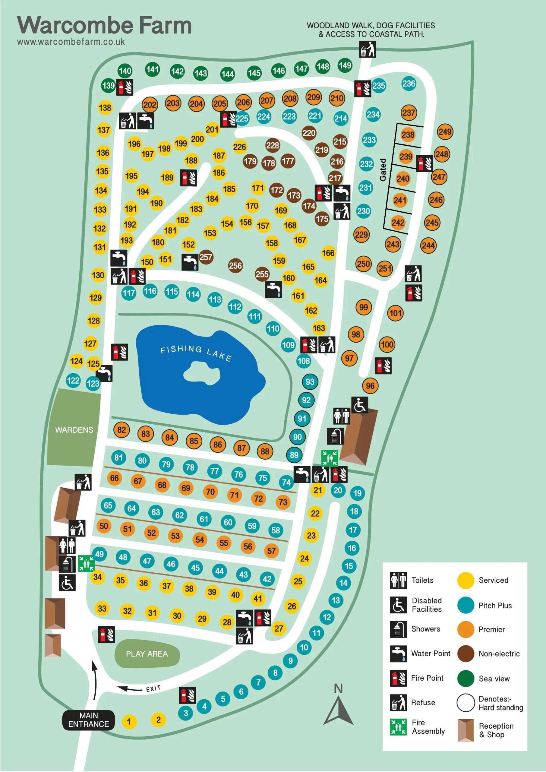 At Warcombe Farm Camping and Caravan Park we will do our best to ensure your stay with us is a pleasant and memorable one. Our pitches are spacious and mostly level. Many of our 260 camping and caravan pitches are separated by fences or shrubbery for enhanced privacy. Serviced pitches are individually marked. We want our guests to be able to enjoy their own space and require everyone to pitch at least 6m away from their neighbour for both comfort and safety.