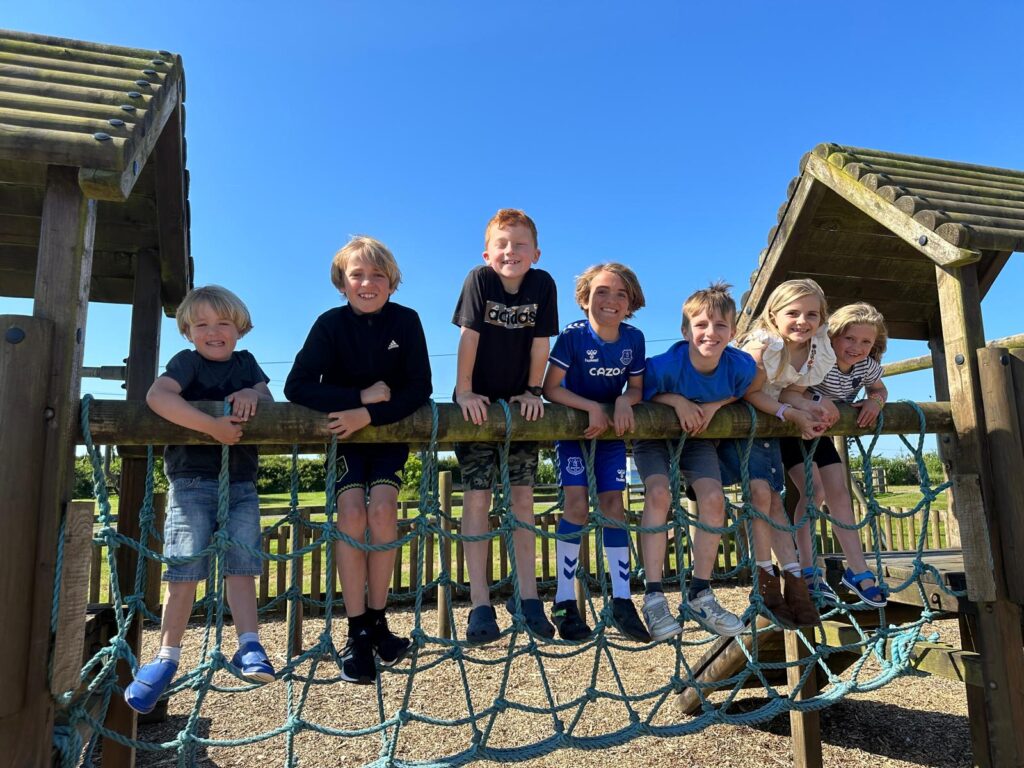 We have a 14 acre fenced woodland for families to explore along with a fenced children’s play area with climbing equipment and a zip wire.
